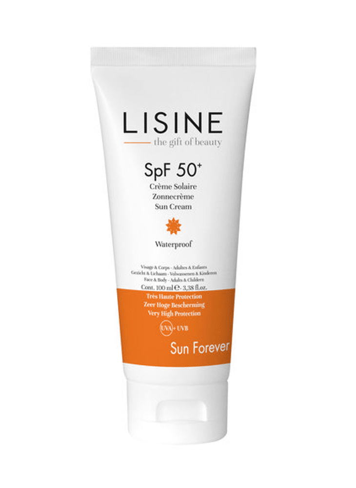 Omdat een gevoelige, lichte huid en huid van kinderen bijzonder kwetsbaar zijn voor UV-stralen biedt LISINE een nieuwe, soepele, gemakkelijk aan te brengen zonnecrème met hoge bescherming die geschikt is voor het hele gezin. Deze crème voedt, kalmeert, en beschermt de huid tegen veroudering door zonlicht met SPF50+. Tevens verzacht en verhoogt hij de elasticiteit van de huid. Dankzij de toevoeging van Vitamine E heeft deze crème ook belangrijke hydraterende eigenschappen. Deze nieuwe formule be- houdt de aquatische biodiversiteit van onze planeet door het water niet te vervuilen.